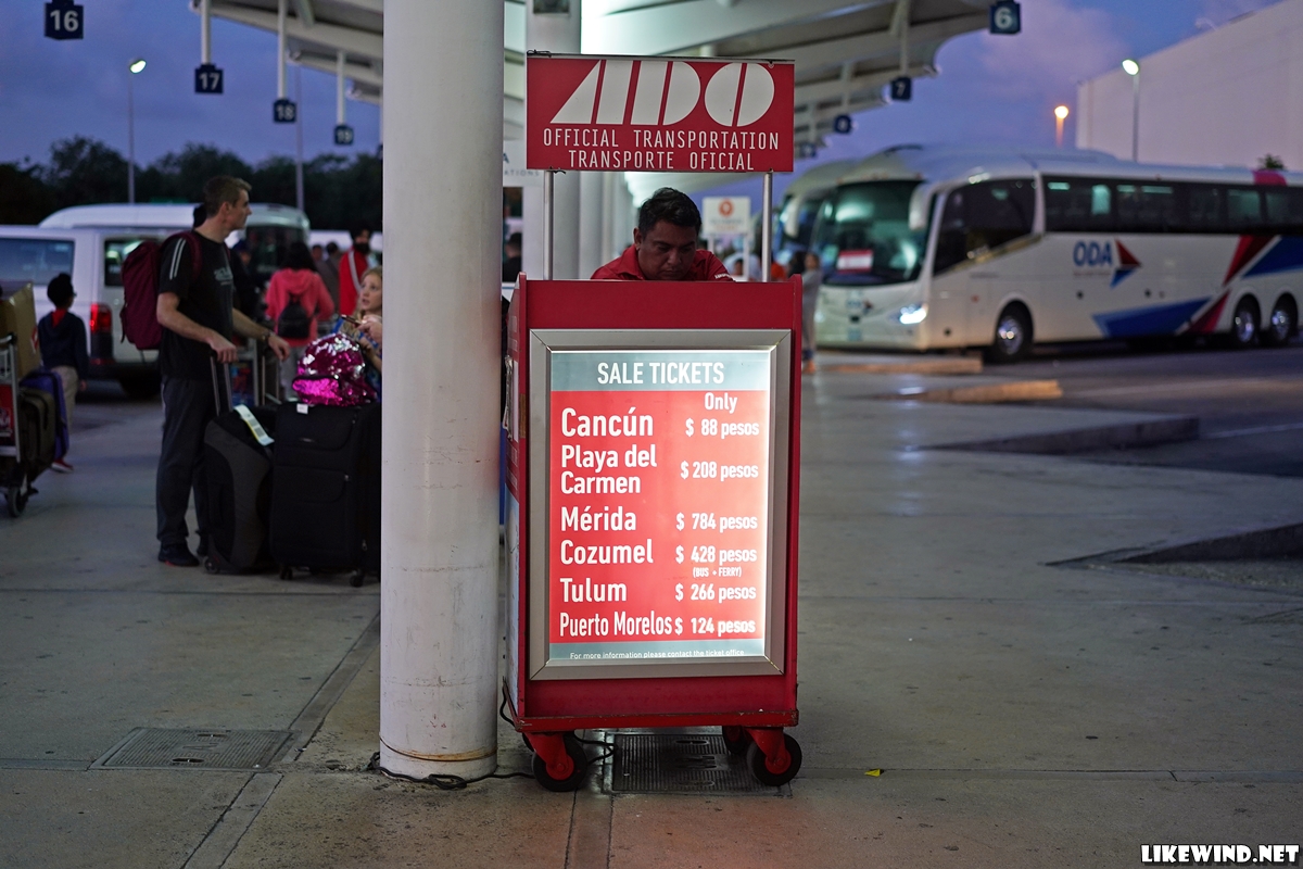 공항에서 칸쿤은 물론 다른 도시로도 쉽게 갈 수 있다. 공항에서 나오자마자 버스를 쉽게 발견할 수 있고, 칸쿤까지는 약 1시간 정도 걸렸다.