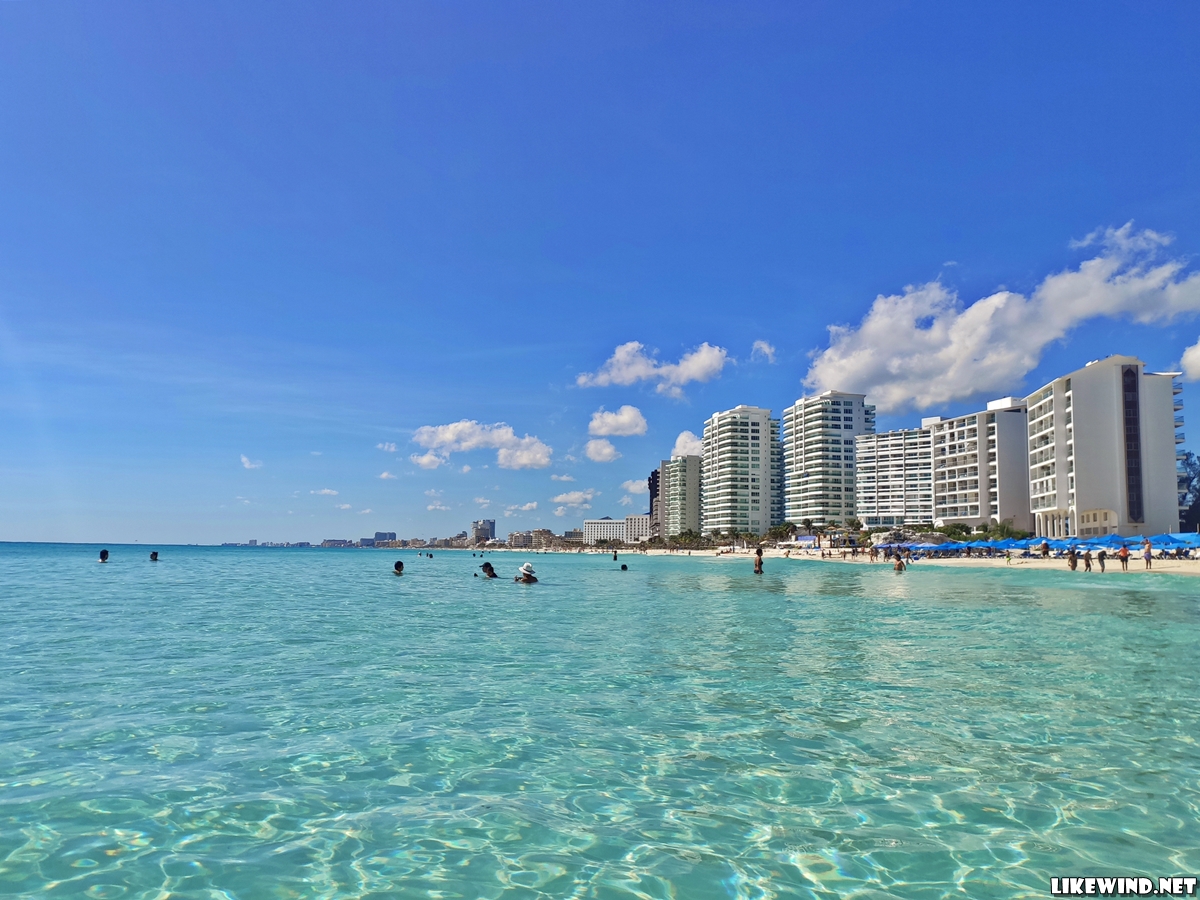 동쪽 해안의 좁고 긴 도로를 따라 형성된 곳을 특별히 소나 오텔레라 혹은 호텔존(Hotel Zone)라고 부르는데 일반적인 사람들이 생각하는 칸쿤이 바로 여기다. 시내에서 며칠 있다가 호텔존에 오니 이제야 칸쿤에 왔다는 느낌이 들 정도로 분위기가 완전히 달랐다. 백사장을 사이에 두고 거대한 호텔과 리조트가 늘어서 있는데도 바다는 너무나 투명하고 깨끗했다.